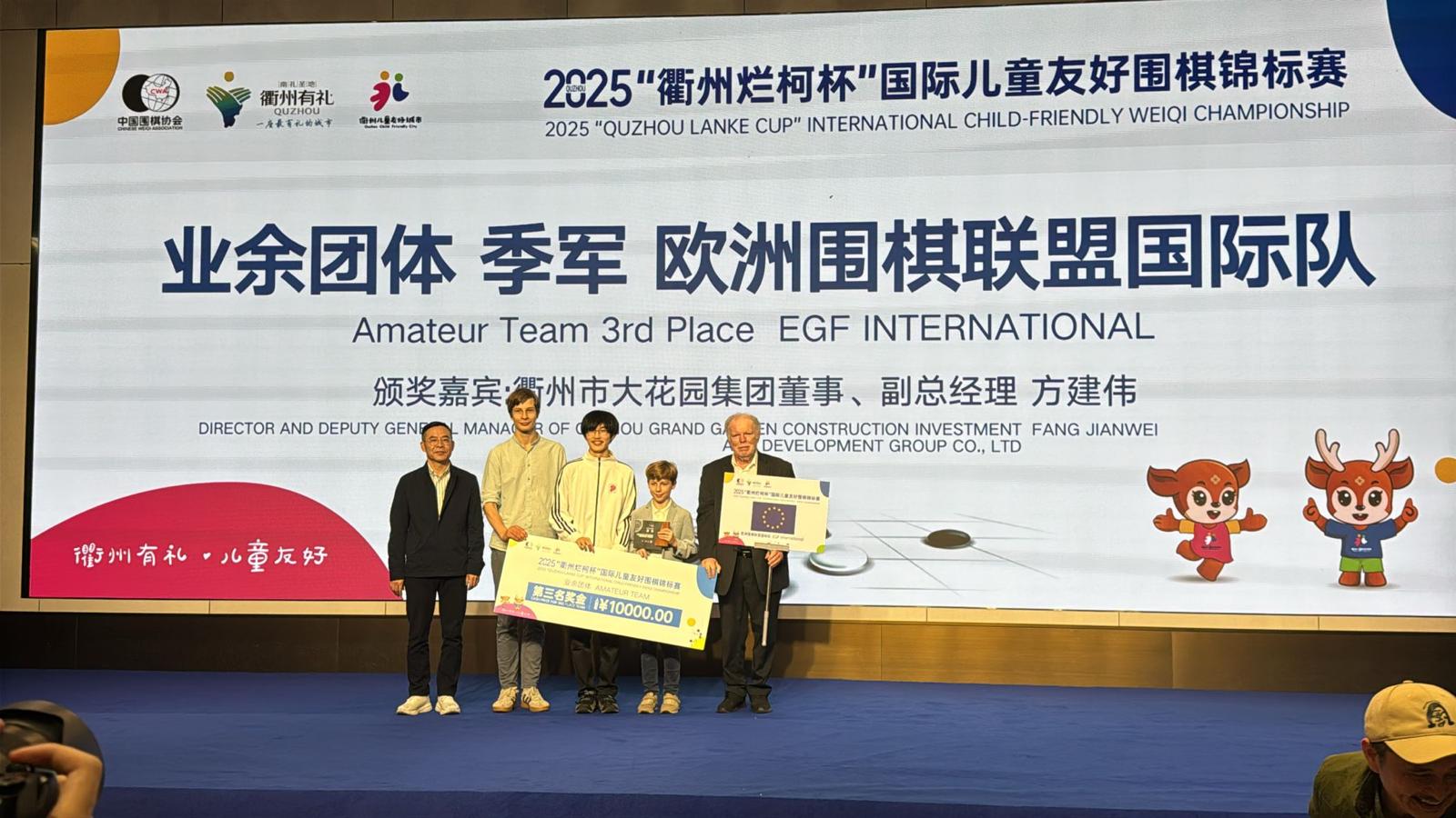 The EGF international team consisting of Vsevolod Ovsienko 6 dan 🇺🇦, Yuze Xin 6 dan 🇩🇪 and Bende Barchi 5 dan 🇭🇺 took 3rd place at the 3rd International Children’s Championship “Quzhou Lanke Cup”, defeating Singapore! Congratulations!